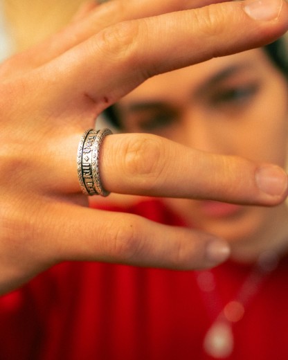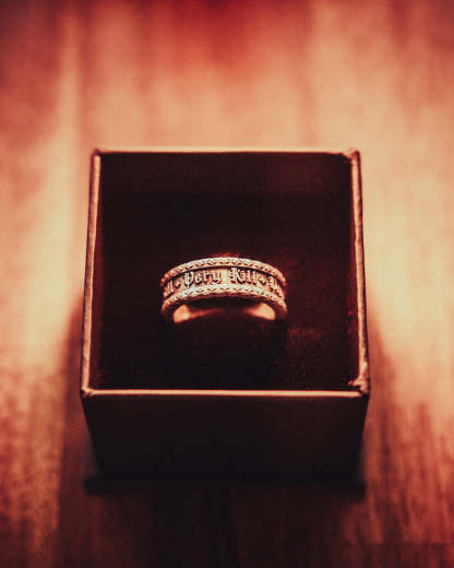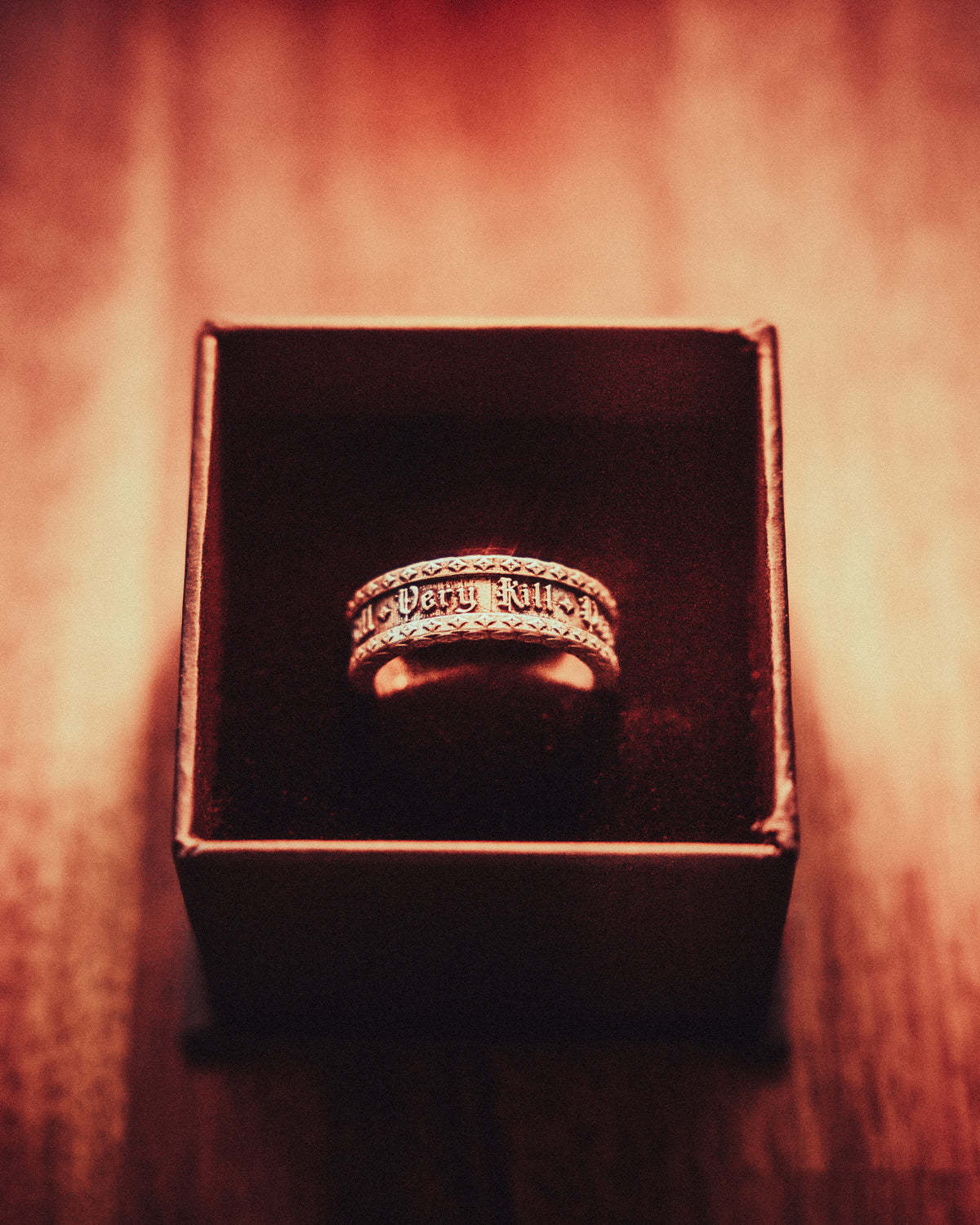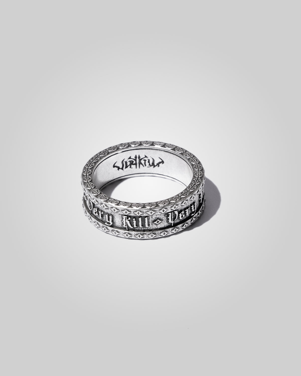 Studded band etched with Very Kill design