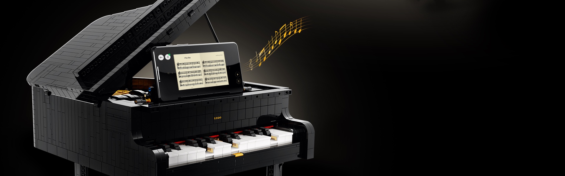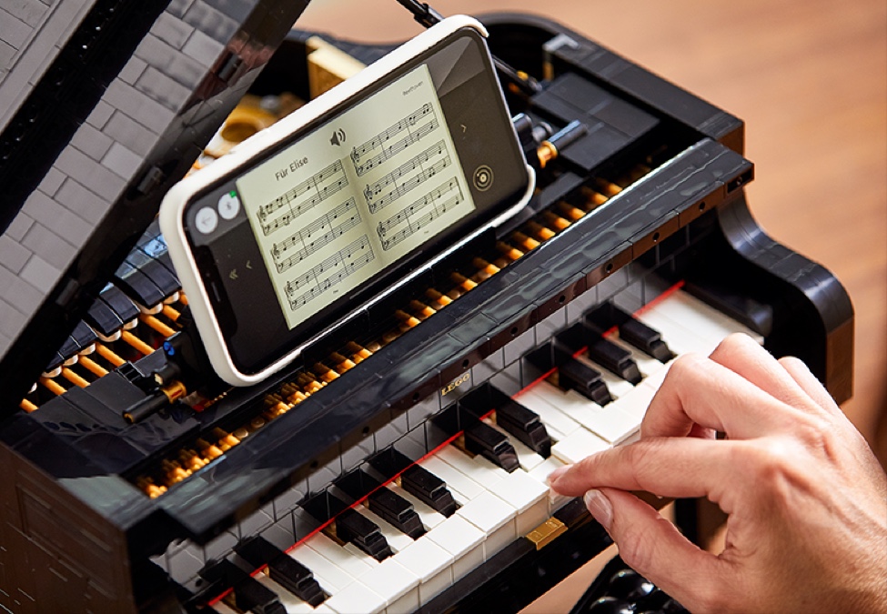 Connect the free Powered Up app to bring the piano to life in sight and sound.Details to display and delight