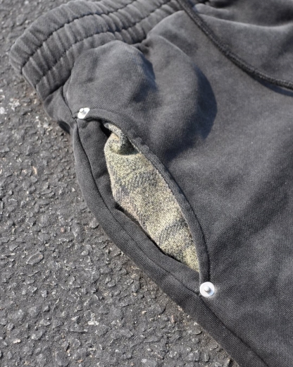 - Plaid in pockets and inside near ankle.